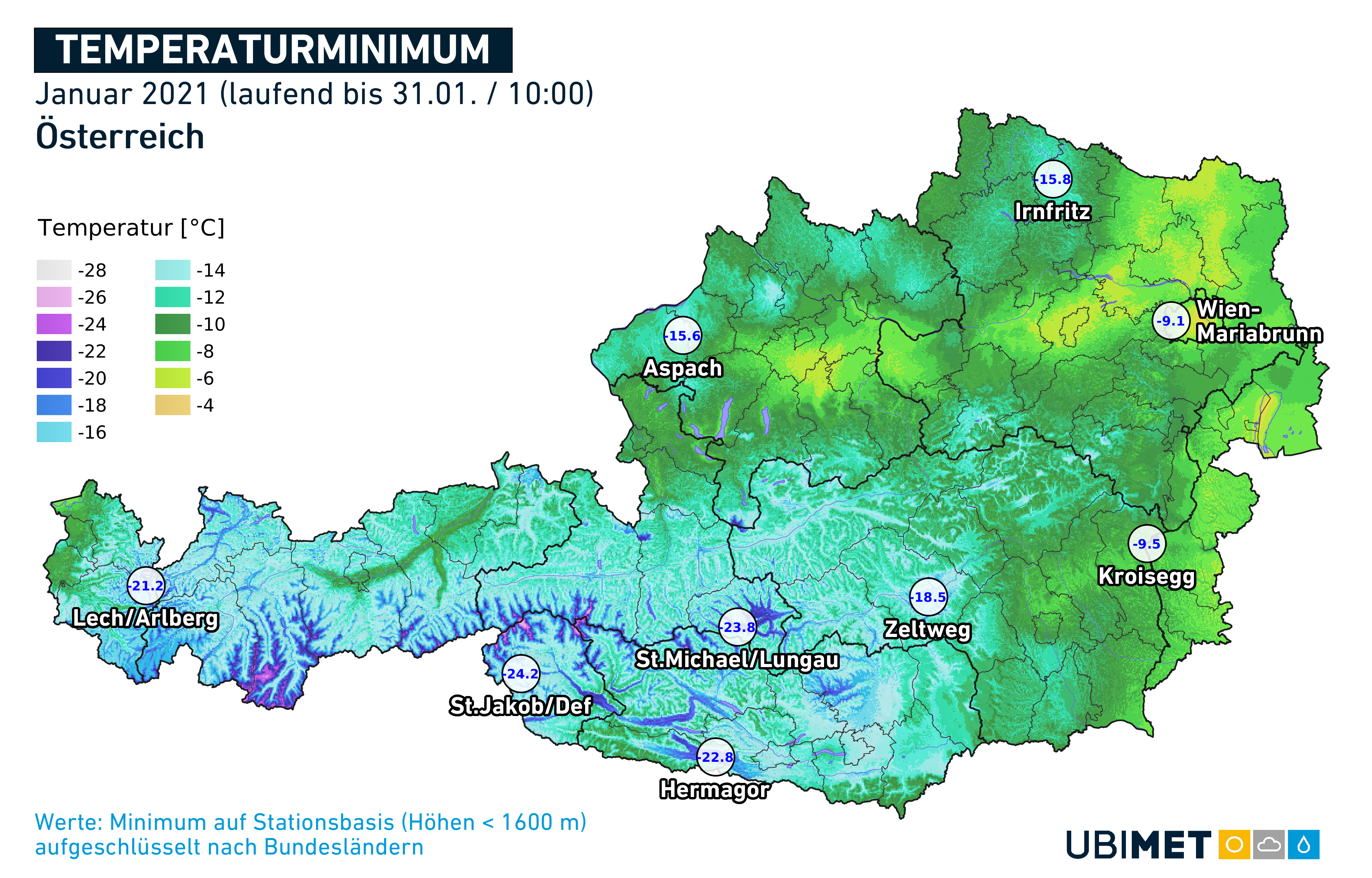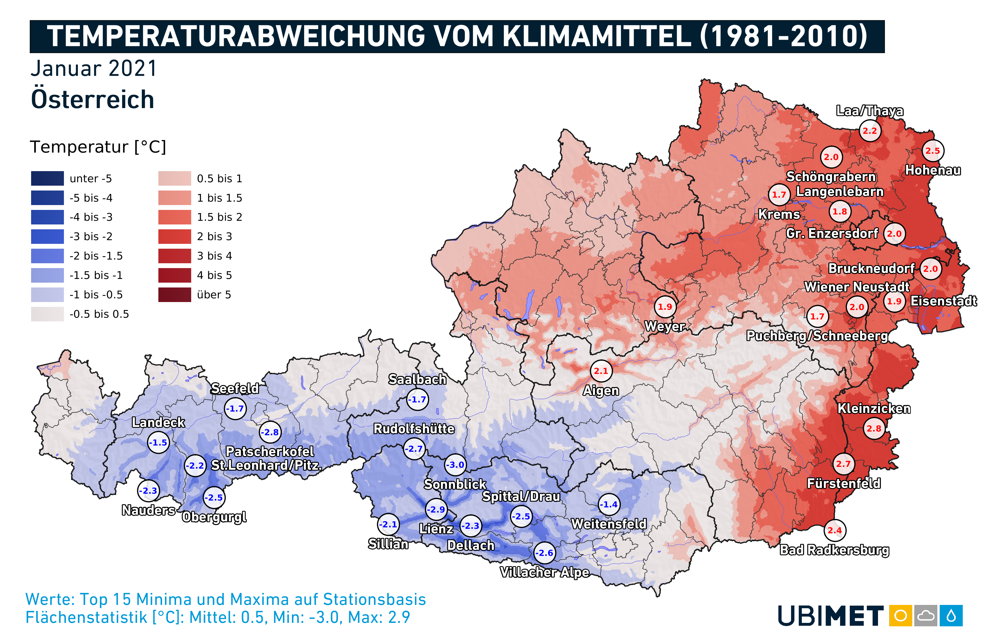 UBIMET: Jänner im Süden und Westen kälter als im Mittel, im Osten zu mild